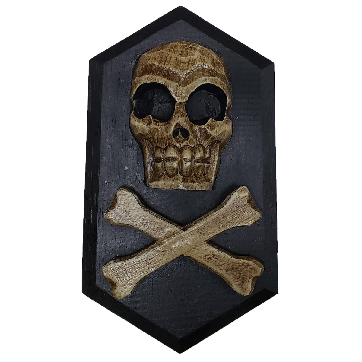 Coffin & Treasure Chest Box Halloween Skull and Bones Box Engraved Hand Carved Wood Engraved with Skulls and Bones on the Side and the Top has Skull Head and Bones Hand attached